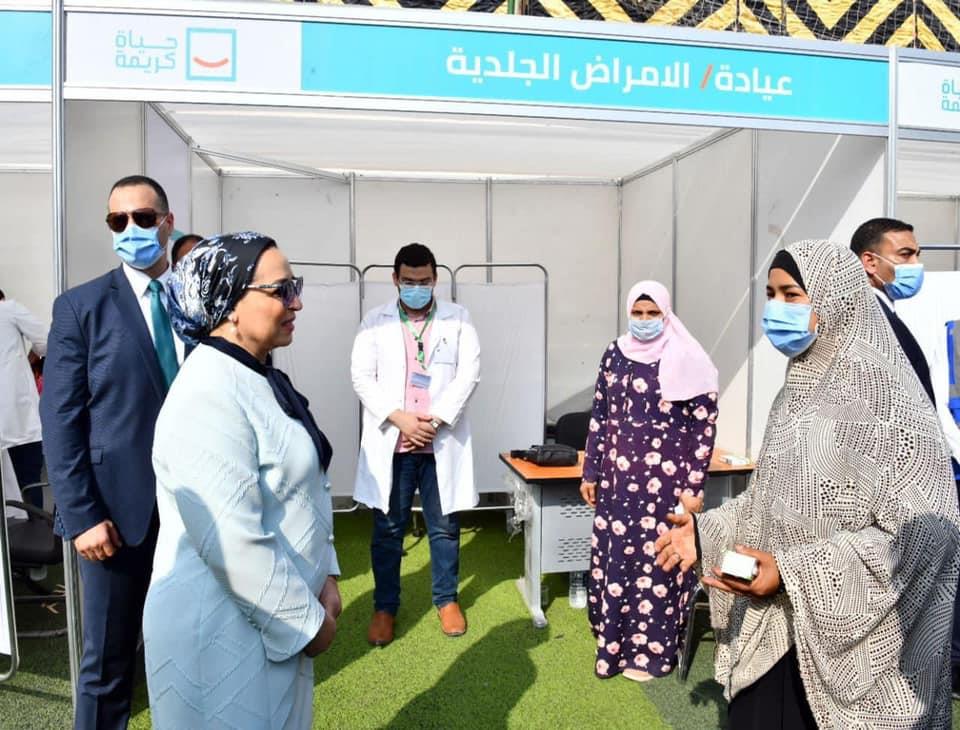 وعقدت قرينة رئيس الجمهورية، اجتماعًا مع متطوعات "حياة كريمة"، كما تفقدت قرية "شمّا" والتقت عددًا من الأهالي، كما تابعت القافلة الطبية التي نظمتها المبادرة الرئاسية "حياة كريمة".