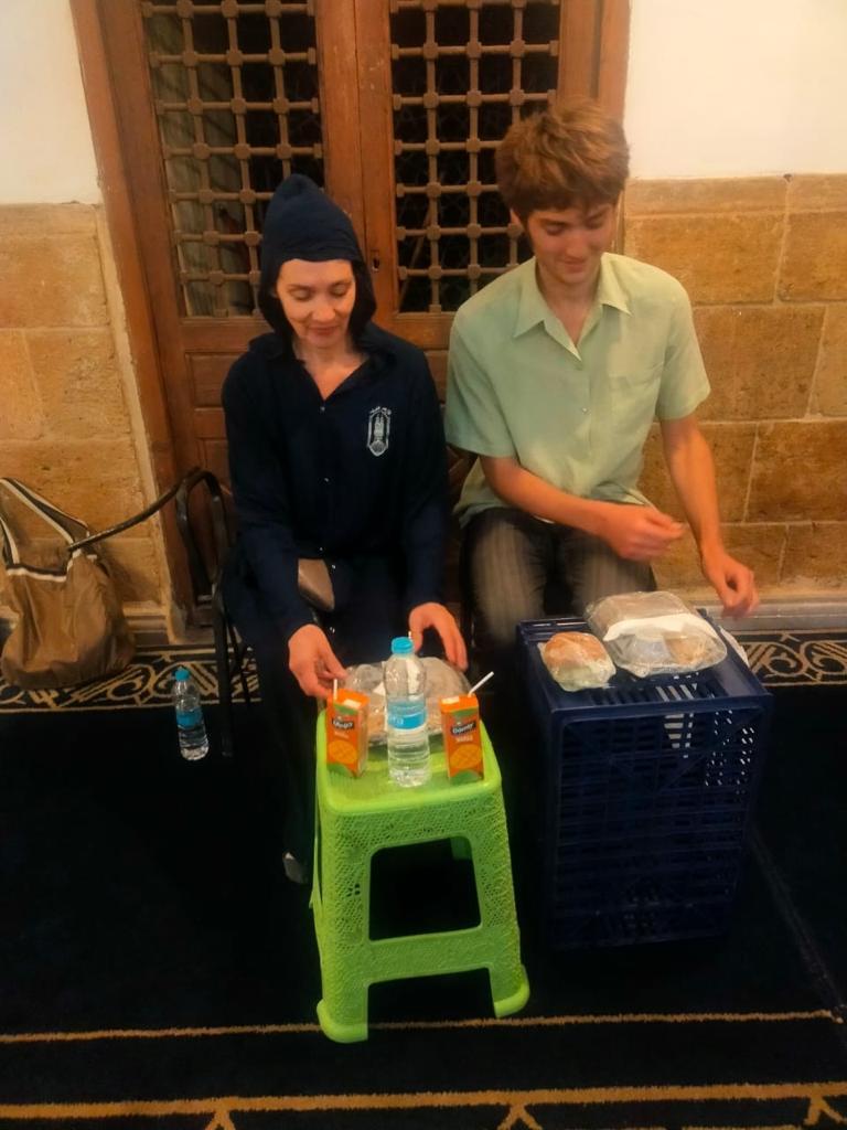 سائحان فرنسيان يشاركان في الإفطار الجماعي بالجامع