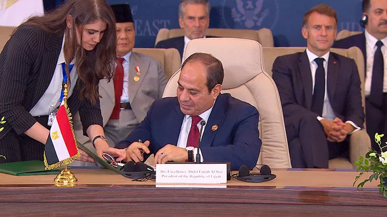 وقال الرئيس، خلال قمة شرم الشيخ للسلام: "إذا كانت شعوب المنطقة تنعم بدولها الوطنية المستقلة، فإن الشعب الفلسطيني ليس استثناءً، وله الحق في دولته المستقلة يعيش جنبًا إلى جنب مع إسرائيل في سلام وأمن واعتراف متبادل".