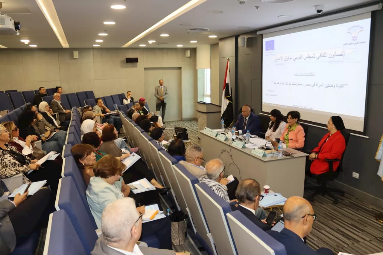 عقد المجلس القومي لحقوق الإنسان، بالتعاون مع الاتحاد الأوروبي، لقاءً حواريًا لمناقشة ورقة سياسات بعنوان "الكوتا وتمكين المرأة في مصر: ممارسات لم تأتِ بثمارها بعد"، والتي قدمتها الدكتورة أمل حمادة أستاذة العلوم السياسية، بمشاركة السفير محمود كارم رئيس المجلس، والدكتور مجدي عبد الحميد المدير التنفيذي للمشروع الأوروبي، والدكتورة سميرة لوقا عضو المجلس، وبحضور الدكتورة عزة كامل الخبيرة النسوية وعدد من الشخصيات العامة وممثلي المجتمع المدني.