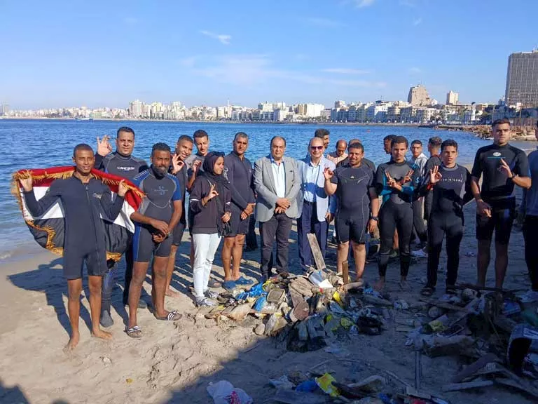 صور.. إطلاق حملة "بحار مستدامة" لتنظيف قاع البحر بالإسكندرية