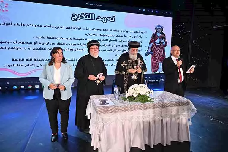 وأشاد البابا بالاهتمام بغرس الجانب الروحي في نفوس المتدربين بالمركز ليكون جانبًا أساسيًّا خلال عملهم في مجال التمريض بحيث يلمس المرضى حضور الله من خلالهم. مشجعًا إياهم على المزيد من التعلم والتطور في مجال التمريض.