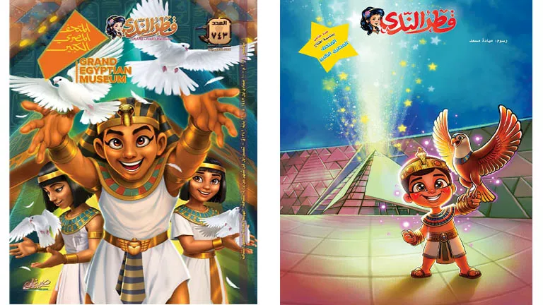 وتقدم مجلة قطر الندى بوستر هدية للأطفال على صفحتين، يعبر عن المتحف المصري الكبير، رسمته الفنانة "ميادة مسعد"، وفيه نجد الصقر حورس وهو رمز من رموز الحضارة المصرية القديمة.
