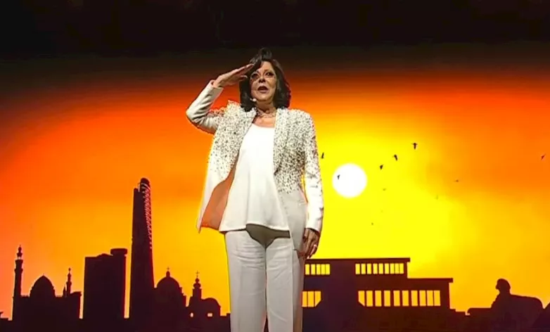 قالت الفنانة والإعلامية إسعاد يونس في بداية احتفالية "مصر وطن السلام": "معلش مجبتش البيجامة الكستور المكوجي ضرب عليها متأسفة جدًا".