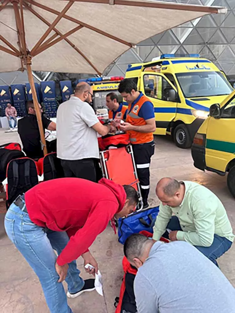 2- نشر 8 سيارات إسعاف حديثة ومزودة بمعدات الإنعاش والإسعاف الأولي داخل المتحف، بالإضافة إلى 15 سيارة متمركزة في نقاط استراتيجية حول المتحف، لضمان الوصول السريع إلى أي موقع داخل أو خارج المبنى.