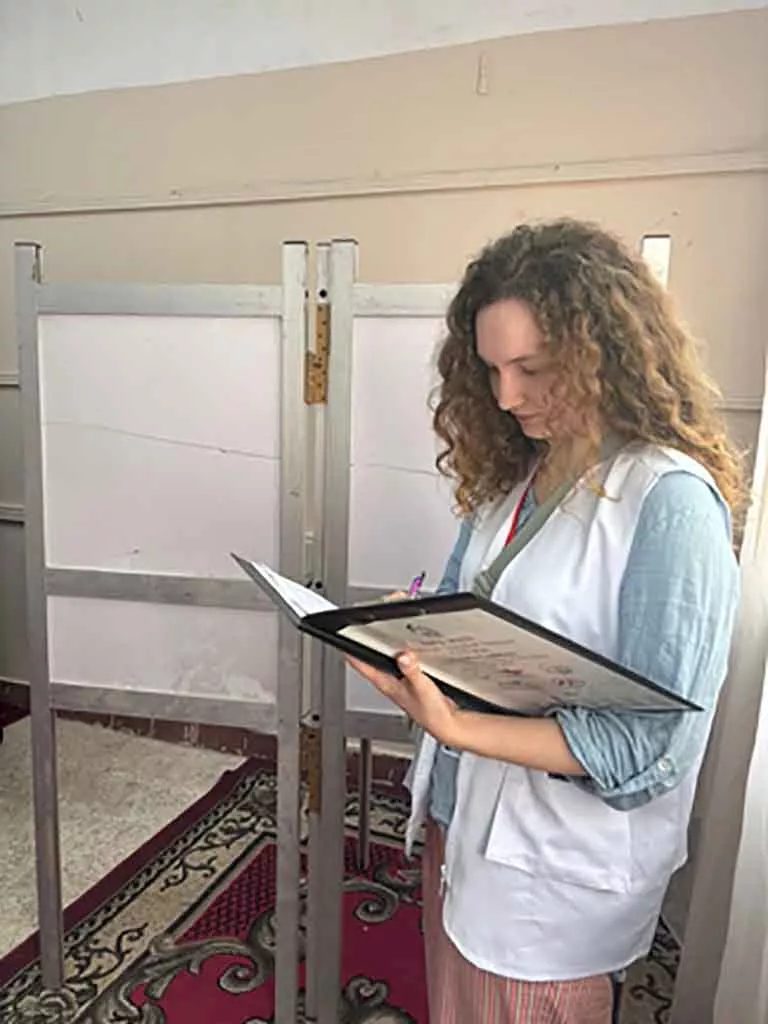 وأكد أعضاء البعثة الدولية، اختفاء مظاهر الدعاية الانتخابية من أمام لجان الاقتراع، حيث لا توجد أي لافتات أو ملصقات الدعائية من أمام المدارس التي تجري بها عملية التصويت.