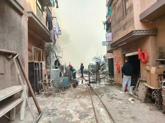 وأوضح "هنو"، بحسب بيان وزارة الثقافة، الجمعة، أن النيران اشتعلت في ديكورات الحارة الخاصة بتصوير مسلسل “الكينج” المشارك في موسم رمضان 2026 والموجودة في منطقة التصوير المفتوحة بالاستديو.