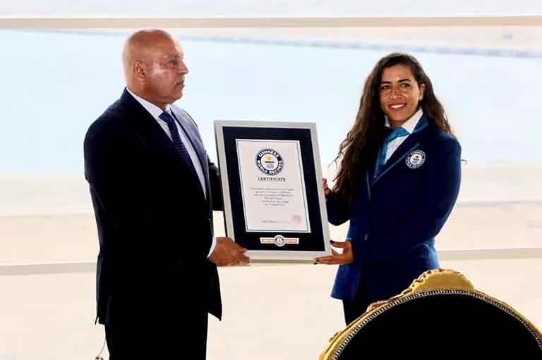 من جانبها، أعربت كانزي الدفراوي، المحكم المعتمد لجينيس للأرقام القياسية عن سعادتها بالتواجد في ميناء السخنة.