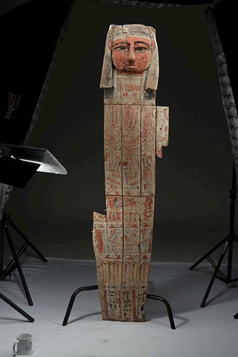 وأشار الدكتور محمد إسماعيل خالد الأمين العام للمجلس الأعلى للآثار، أن المجموعة المستردة تضم 25 قطعة أثرية من أبرزها أغطية توابيت خشبية ومذهبة تعود إلى عصر الأسرات، ولوحة من لوحات مومياوات الفيوم ترجع إلى ما بين القرنين الأول والثالث الميلادي، وقدم من حجر الجرانيت يرجع تاريخها إلى الفترة بين 1189 و1292 قبل الميلاد، إضافة إلى مجموعة من الحلي الدقيقة المصنوعة من المعادن والأحجار من القرن الرابع قبل الميلاد، وأجزاء من معبد يُعتقد أنه للملكة حتشبسوت، وعدد من التماثيل الصغيرة المصنوعة من العاج والأحجار الأخرى، والعديد من القطع ذات الطابع الأثري المميز التي تعود لعصور مختلفة من الحضارة المصرية القديمة.
