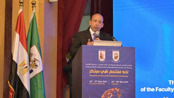 وأشار خلال كلمته بمؤتمر كلية الطب تحت عنوان " نحو مجتمع مبتكر"، إلى أن قصر العينى يدعم مجالات البحث العلمى والمشروعات الابتكارية التى تعتمد على التكنولوجيا الحديثة، ويقدم مفهومًأ للابتكار في التعليم العالي، بما يساهم في تقديم تعليم ذي جودة عالية، وتمكين الطلاب من امتلاك مجموعة من المهارات والمعارف والخبرات الأكثر ارتباطًا بالابتكار، لافتًا إلى إنشاء مركز قصر العيني لدعم البحوث والابتكارات.