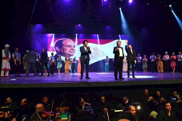 وقد جاءت الاحتفالية على فصلين؛ حيث افتتحتها فرقة رضا للفنون الشعبية والاستعراضية بقيادة أوركسترا المايسترو سليم سحاب، بمجموعة من الفقرات الموسيقية والاستعراضية التي ضمّت: موسيقى فيلم غرام في الكرنك، حلاوة شمسنا، العتبة جزاز، البنت بيضا، الحجالة، مقطوعة موسيقية، النوبة.