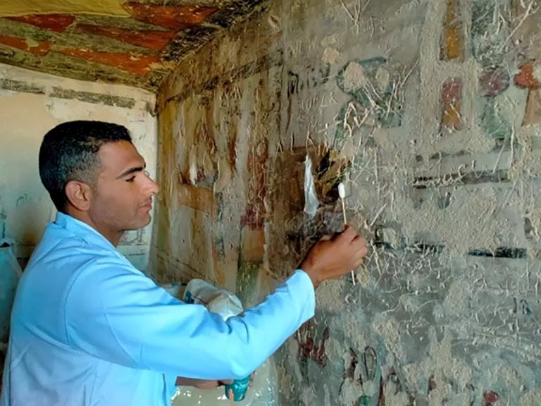 وأوضح محمد عبد البديع رئيس قطاع الآثار المصرية بالمجلس الأعلى للآثار، أن أعمال الترميم شملت حجرة الدفن والحجرة الأمامية، حيث تم تشكيل فريق من مرممي المجلس الأعلى للآثار والذي قام بإعداد تقرير توثيقي شامل لحالة المقبرة وتحديد مواطن التلف وأسبابها، قبل الشروع في تنفيذ أعمال الترميم وفقاً لأعلى المعايير الفنية والعلمية.