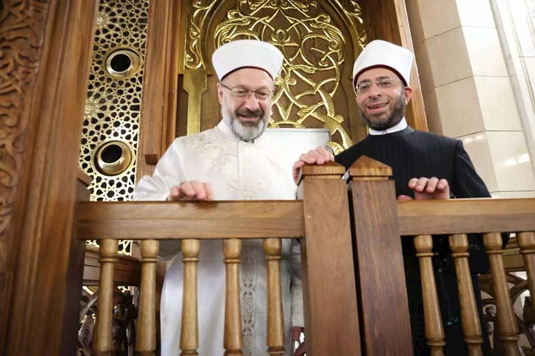 ورفع رئيس الشئون الدينية التركي، الأذان من داخل مسجد مصر، وصعد لمنبره رفقة الدكتور أسامة الأزهري وزير الأوقاف، بعد انتهاء الجولة.
