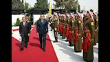 شهدت مراسم الاستقبال مصافحة وفدي البلدين الرسميين أعقبها عزف السلامين الوطنيين لمصر والأردن، ثم مراسم تفتيش حرس الشرف.