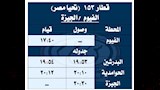 وتقرر اعتباراً من يوم السبت الموافق 27 / 9 / 2025 تشغيل قطار 930 (ثانية فاخرة) من القاهرة إلى أسيوط حيث يقوم من محطة القاهرة الساعة 08:30 ويصل أسيوط الساعة 13:20 طبقاً للجدول المرفق، على أن يعود بقطار 929 ( ثانية فاخرة ) حيث يقوم من محطة أسيوط الساعة 13:40 ويصل القاهرة محطة القاهرة الساعة 18:30 طبقاً للجدول المرفق.