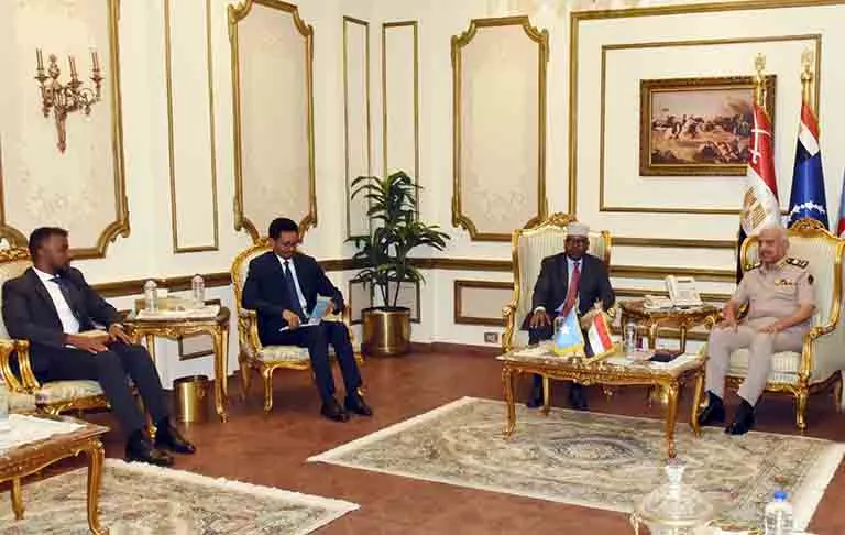 التقى الفريق أول عبد المجيد صقر، القائد العام للقوات المسلحة وزير الدفاع والإنتاج الحربي، أحمد معلم فقي، وزير الدفاع الصومالي، والوفد المرافق له.