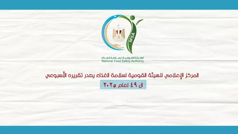 أصدر المركز الإعلامي للهيئة القومية لسلامة الغذاء تقريره الأسبوعي الـ49 لعام 2025، عن الفترة من 27 ديسمبر- 2 يناير 2026، والذي تضمن العديد من الأنشطة المختلفة.