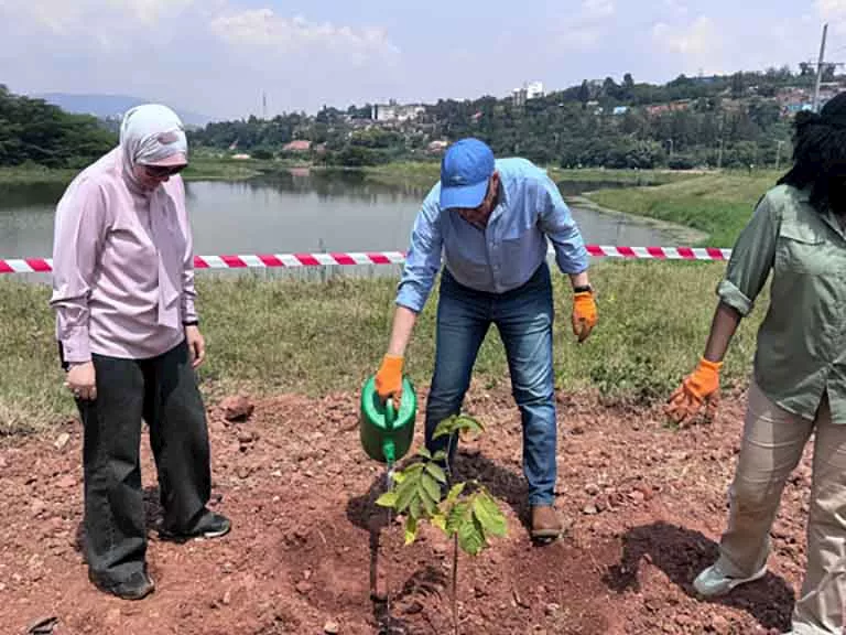 وخلال المشاركة، زرع الدكتور هاني سويلم، والسفيرة حنان شاهين، وعدد من أعضاء الوفد المصري، عددًا من الأشجار في لفتة رمزية تعكس الاهتمام المشترك بحماية البيئة وتعزيز الحلول القائمة على الطبيعة، وبما يؤكد عمق العلاقات المصرية - الرواندية وحرص الجانبين على تعزيز التعاون الإيجابي وتبادل الخبرات في المجالات ذات الاهتمام المشترك.