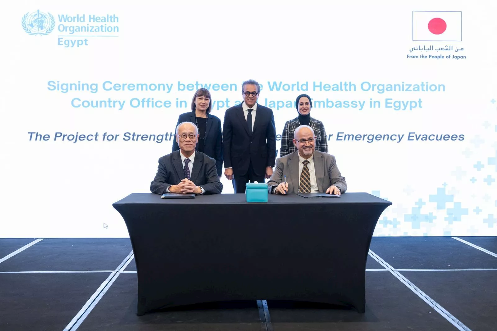 وقعت منظمة الصحة العالمية في مصر اتفاقية جديدة مع سفارة اليابان لدعم تقديم خدمات الرعاية الصحية الطارئة للمرضى والجرحى الفلسطينيين الذين تم إجلاؤهم من قطاع غزة لتلقي العلاج في مصر.