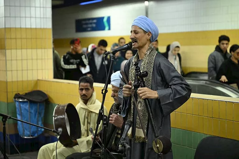 استقبلت محطة جمال عبد الناصر، اليوم الاثنين، في مشهد غير مألوف داخل أروقة مترو الأنفاق، جمهورها بمفاجأة ثقافية تمثلت في عرض فني حي لرواة السيرة الهلالية، وقد لفت العرض انتباه الركاب وأثار فضولهم، قبل أن يتحول سريعا إلى حالة من التفاعل والبهجة بين الحاضرين.