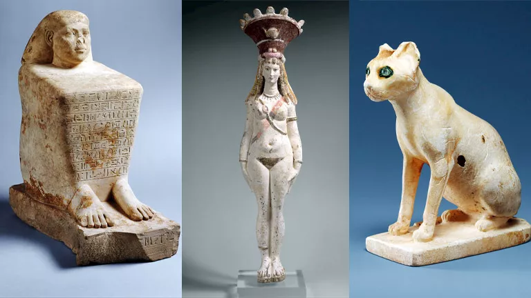 وتشمل القطع أيضًا تمثالًا للإلهة إيزيس في هيئة أفروديت من القرن الثاني الميلادي، في دلالة على التداخل الثقافي بين الحضارة المصرية واليونانية، إلى جانب تمثال كتلي لشخص يُدعى “عنخ إن نفر” من العصر المتأخر.