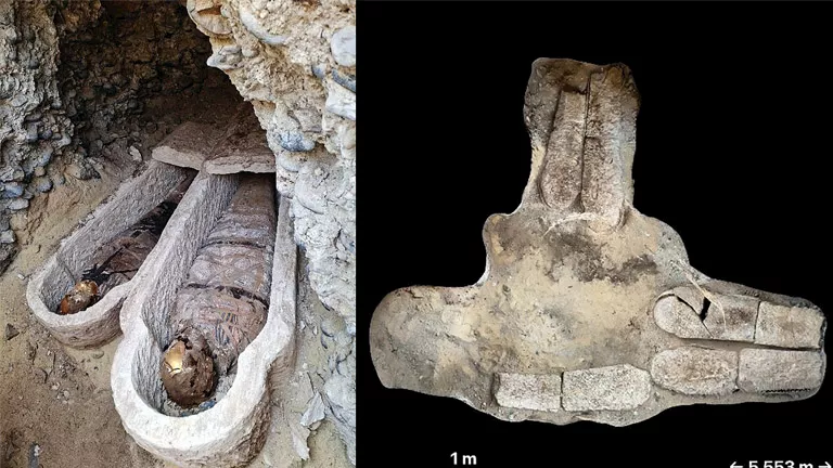 وأوضح أنه في الغرفة الأولى، تم العثور على لوح حجري وجرة كبيرة تحتوي على بقايا بشرية محروقة تعود لشخص بالغ، إلى جانب عظام طفل رضيع ورأس حيوان من فصيلة السنوريات، وجميعها كانت ملفوفة بقطع من النسيج.