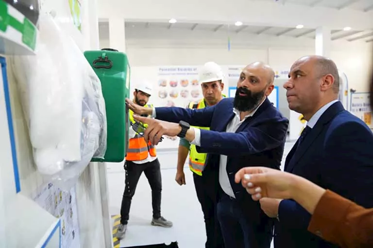 وتابع وزير العمل، خلال الجولة، برامج التدريب المخصصة للعاملين داخل الموقع، والتي تشمل تدريبات نظرية وعملية على إجراءات السلامة والصحة المهنية في أعمال التشييد والبناء، إضافة إلى التدريب على استخدام المعدات مثل السقالات والأوناش والروافع، ووسائل الوقاية الشخصية، إلى جانب التدريب على الإسعافات الأولية، بهدف نشر ثقافة السلامة داخل مواقع العمل.