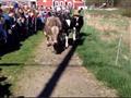 وقال أحد المشاهدين إن الأبقار كانت محبوسة لفترة داخل مكان مغلق في المزرعة ولم تمنح لها الفرصة لأن تنطلق في الطبيعة طوال فصل الشتاء.