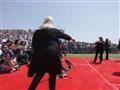 وبعدها قام بعض الحاضرين بدفع إحداهما لتتقدم شيئا فشيئا وتصل إلى السجاد الأحمر، مكان تسليم الجوائز، قبل أن يتمّ دفعها إلى الخارج.