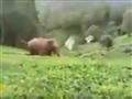 وقد تم التقاط هذا الفيديو لحيوان بري ضخم هائج وهو يدخل عنوة إلي أحد مزارع الشاي بالهند ويهاجم الشخص المسئول عن رعاية الفيل الموجود بالمزرعة الكبيرة. وحاول الراعي الإبقاء على الضيف غير المرغوب فيه بعيدا عن حيواناته البريئة، لكن الأمر لم يكن سهلاً للغاية، حيث كان على راعي الفيل أن يخاطر بحياته وأطرافه، لتشتيت انتباه الحيوان البري المهاجم من أجل المساعدة في إنقاذ الفيل. ولحسن الحظ، تعثر الحيوان المهاجم الدخول وسقط أرضا، مما سمح للرجل بالفرار من هذا الحيوان الهائج.