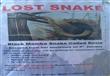 قالت صحيفة ديلي ميل البريطانية إن أفعى "المامبا" السوداء طليقة في شوارع لندن، مشيرة إلى انتشار ملصقات عن تلك الأفعى الأفريقية السامة تحذر السكان من "قبلة الموت".