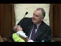 رئيس البرلمان النيوزيلندى يرضع طفلا خلال الجلسة العامة