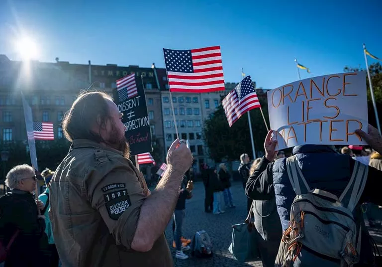 وخرج المتظاهرون الأوروبيون صباح اليوم السبت، في برلين وباريس وروما والسويد رافعين لافتات تندد بالفاشية والديكتاتوريات، إذ اتهم البعض الرئيس الأمريكي دونالد ترامب بعدم دعم الديمقراطية.