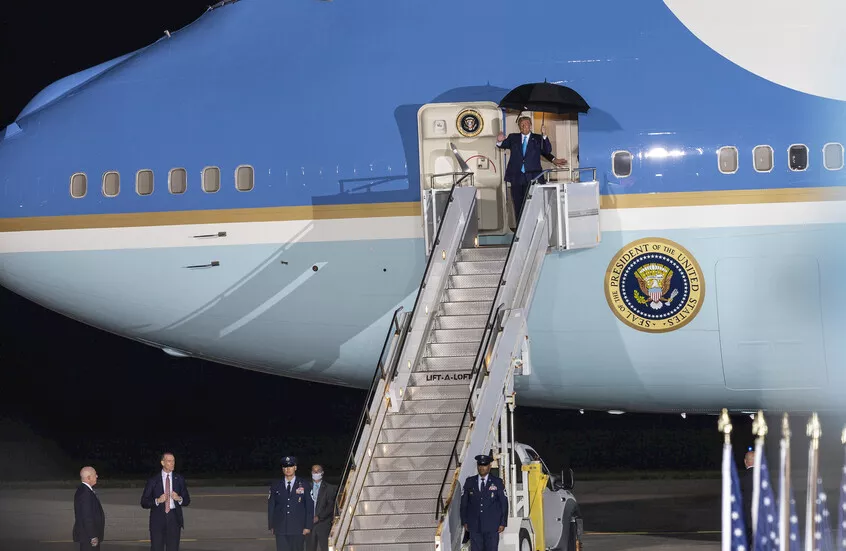 صعد الرئيس الأمريكي دونالد ترامب إلى الطائرة AF1 بسرعة، مستخدما سلما صغيرا بسبب "إجراءات أمنية مشددة"، وفق ما قال مسؤول في البيت الأبيض.