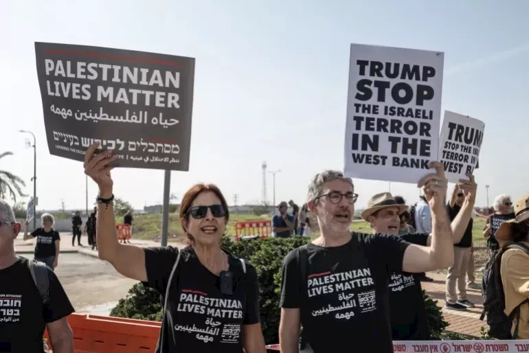 تظاهر عشرات اليساريين في إسرائيل، اليوم الجمعة، قرب مركز التنسيق المدني العسكري الأمريكي في كريات جات جنوبي إسرائيل، ودعوا الرئيس الأمريكي دونالد ترامب لوقف "الإرهاب الإسرائيلي" في الضفة الغربية.