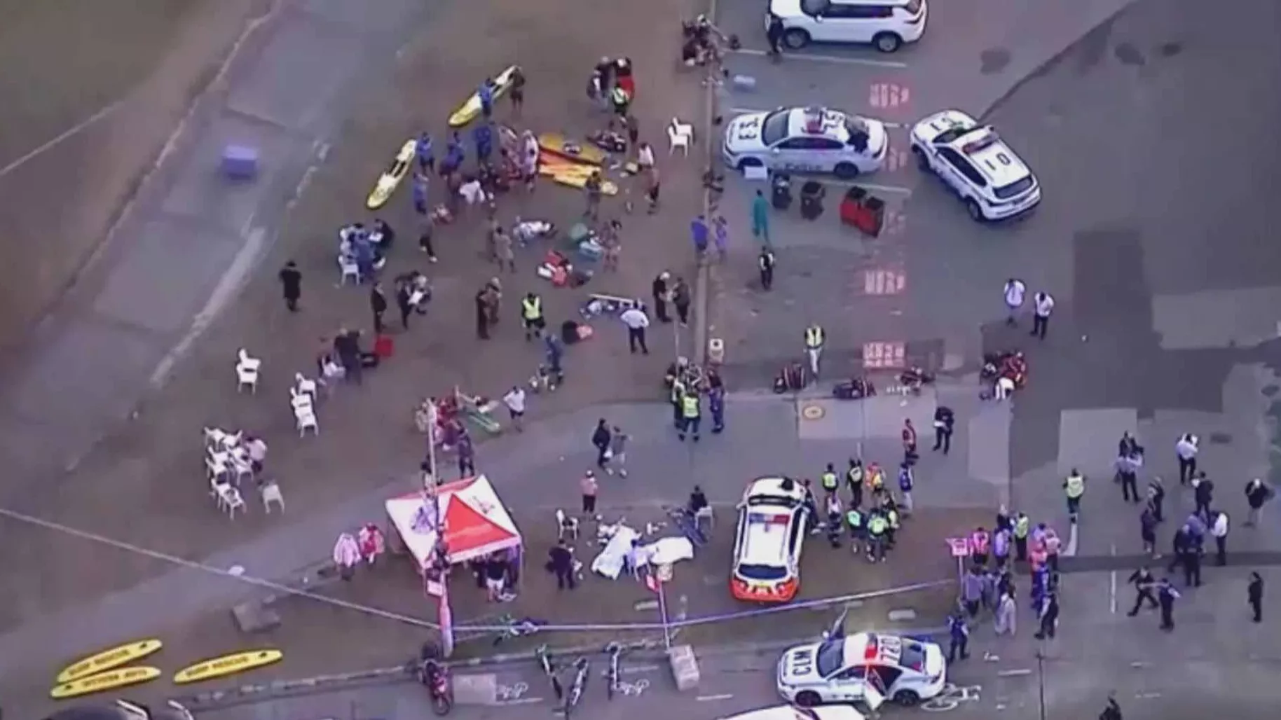 أظهر مقطع فيديو من كاميرا سيارة (Dashcam) شخصين من المارة يندفعان نحو أحد المشتبه بهما قبل الهجوم ويحاولان الاشتباك معه. الفيديو، الذي نُشر على وسائل التواصل الاجتماعي وحددت شبكة سي إن إن الأمريكية موقعه الجغرافي، يُظهر رجلًا يصارع المهاجم بعد خروجه من سيارته. وأفادت التقارير بأن الشخصين اللذين تدخلا قُتلا بالرصاص خلال المواجهة.