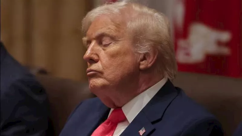 وخلال الاجتماع، أغلق ترامب عينيه عدة مرات، كما بدا أحيانًا وكأنه يحدق في ورقة موضوعة أمامه على الطاولة بطريقة توحي بأن عينيه مغمضتان.
