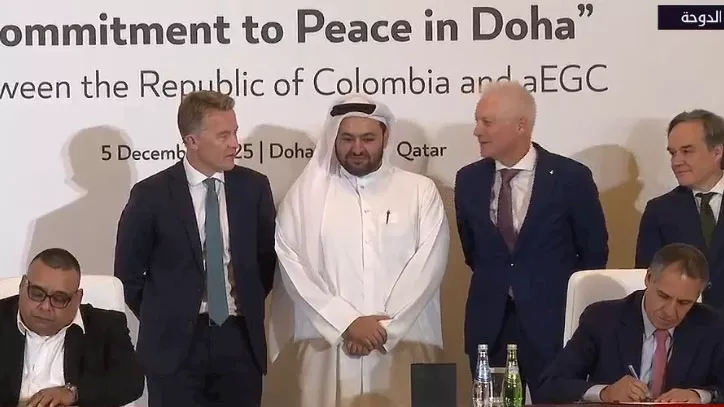 شهدت العاصمة القطرية الدوحة اليوم الجمعة، توقيع "اتفاقية الدوحة لترسيخ الالتزام بالسلام" بين الحكومة الكولومبية ومجموعة "جيش غايتانيستا"، برعاية قطر والنرويج وإسبانيا وسويسرا.