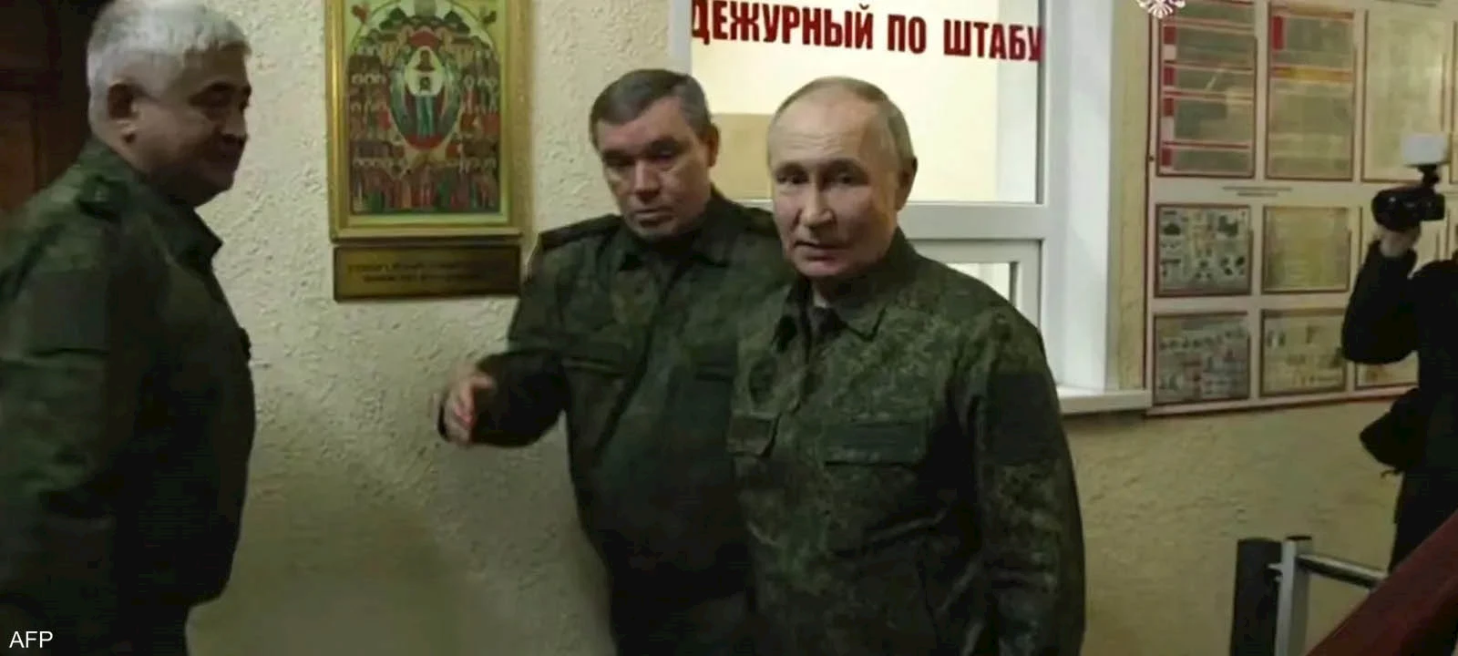 وأظهرت صور الاجتماع مع رئيس الأركان العامة، فاليري جيراسيموف، بوتين مرتديا الزي العسكري المموه، فيما لم يُكشف عن الموقع الدقيق للزيارة.