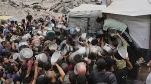 وتزاحم الناس حول أواني الأرز الضخمة، في محاولة للحصول على أي كمية ممكنة، وسط تدافع كبير وضغط على الحواجز، ما أدى إلى فوضى كبيرة وعدم التمكن من توزيع المساعدات على الفلسطينيين.