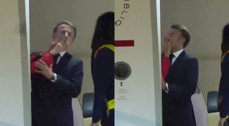 بدا ماكرون متفاجئًا من الموقف، حيث تراجع بخفة وقطب حاجبيه، ثم استعاد رباطة جأشه موجهًا التحية للحضور، وتقدّم برفقة بريجيت نحو سلم الطائرة، محاولًا مساعدتها في النزول، لكنها رفضت المساعدة.