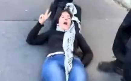ألمانية تستمر بالهتاف ''فلسطين حرة'' خلال اعتقالها