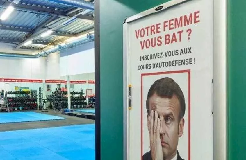 لكن الفرنسيين لم يفوّتوا الفرصة، وسرعان ما انتشر إعلان غريب في إحدى صالات الألعاب الرياضية، يحمل عنوان: "زوجتك تضربك؟ سجّل في دورات الدفاع عن النفس!".