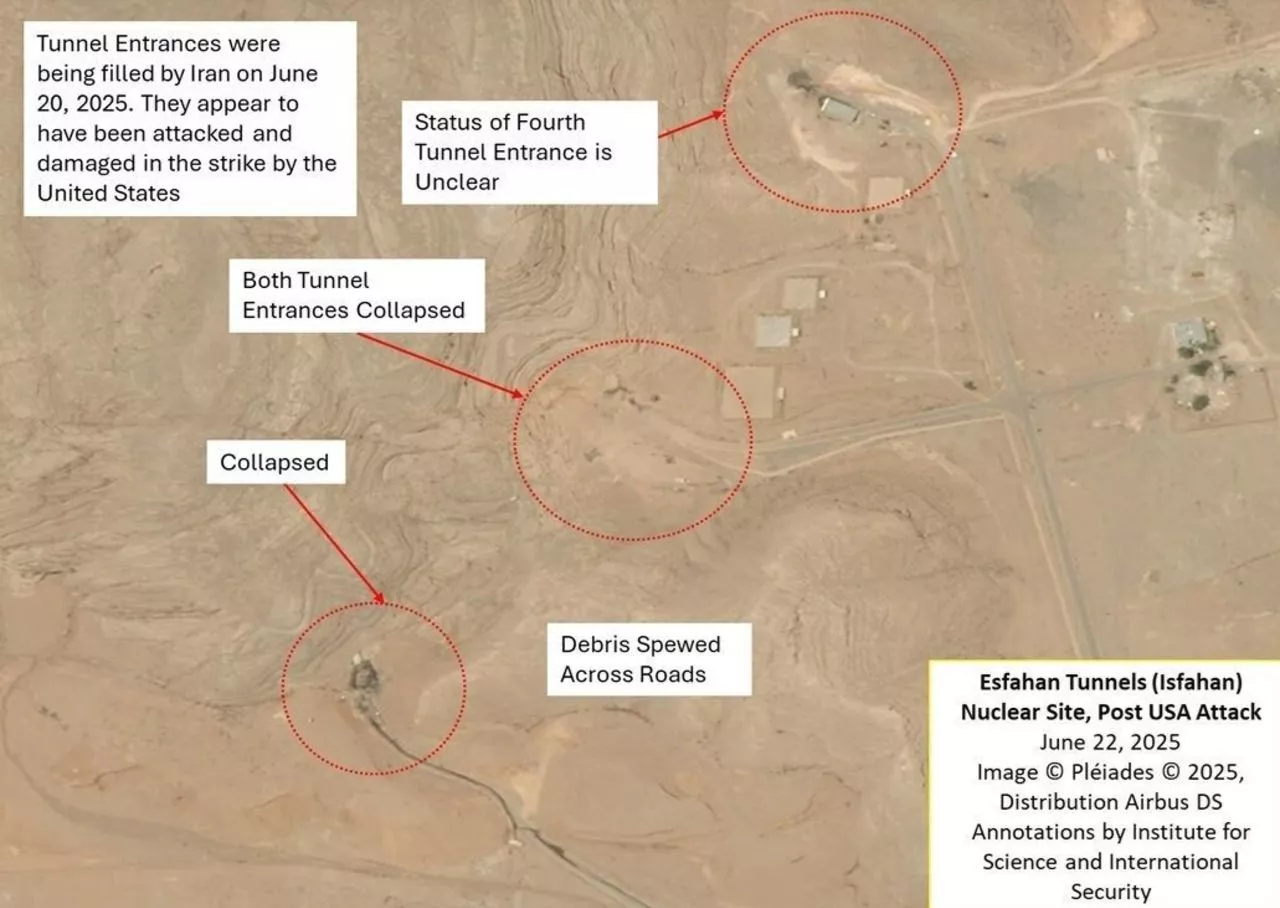 وأظهرت صور التُقطت بالأقمار الصناعية يوم الجمعة ردم مداخل الأنفاق بالتربة، في إجراء وصفه المعهد بأنه "احترازي" ربما يهدف إلى احتواء انفجارات داخلية أو منع تسرب مواد نووية خطرة من المنشأة.