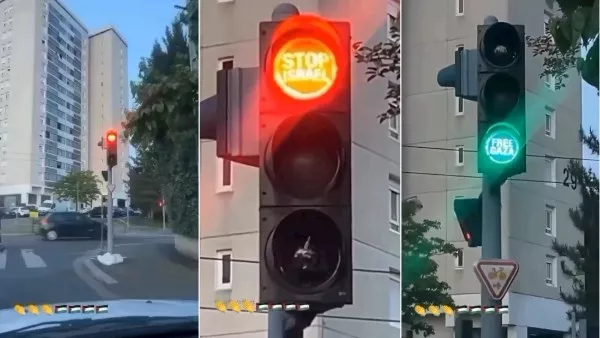 ففي أحد الشوارع الرئيسية، تظهر على الإشارة الضوئية الحمراء عبارة "قف ضد إسرائيل"، بينما تحمل الإشارة الخضراء رسالة "الحرية لغزة"، في لفتة يومية تحمل رسالة واضحة تذكّر المارة والمعبرين بالمأساة الإنسانية التي تلتهم غزة منذ اندلاع العدوان في أكتوبر 2023.