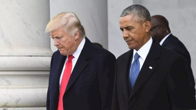 ويُرجّح أن ترامب وأوباما، استخدما تعابير وجهيهما الباسمة لإخفاء نقاش أكثر جدية عن أعين المحيطين بهم.