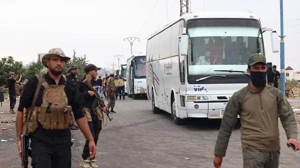بدأت العائلات المحتجزة داخل السويداء جنوب غربي سوريا بالخروج من المدينة، بعد جهود الوساطة التي بذلتها الحكومة السورية في هذا الشأن وانطلقت الحافلات التي تقل تلك العائلات.