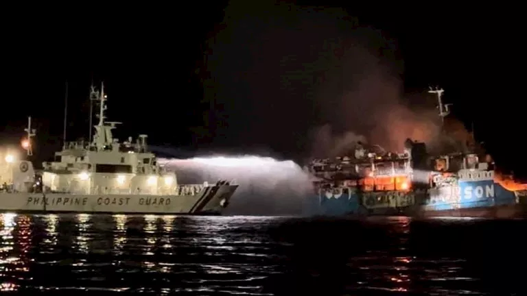 وأظهرت صور ومقاطع فيديو جرى تداولها على مواقع التواصل الاجتماعي ركابا مذعورين، معظمهم يرتدون سترات نجاة، يقفزون في البحر بينما كانت ألسنة اللهب البرتقالية والدخان الأسود تتصاعد من السفينة المشتعلة.