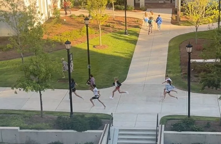 وانتشرت عبر مواقع التواصل الاجتماعي صور للطلاب المذعورين الفارين من مطلق النار في الجامعة.