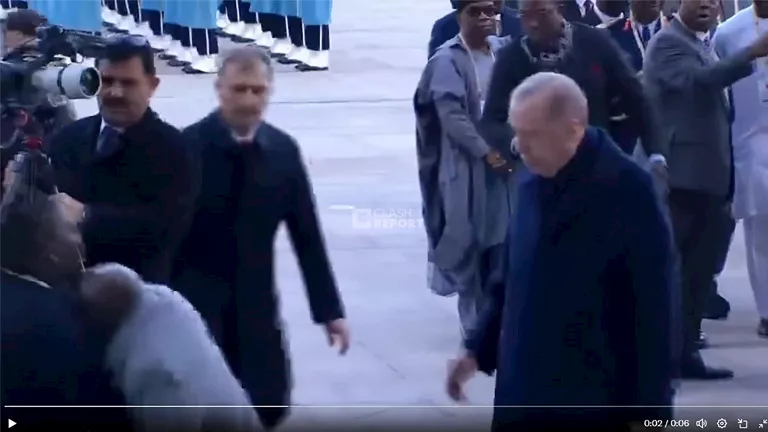 بالفيديو.. تعثر وسقوط رئيس نيجيريا أثناء سيره بجانب أردوغان